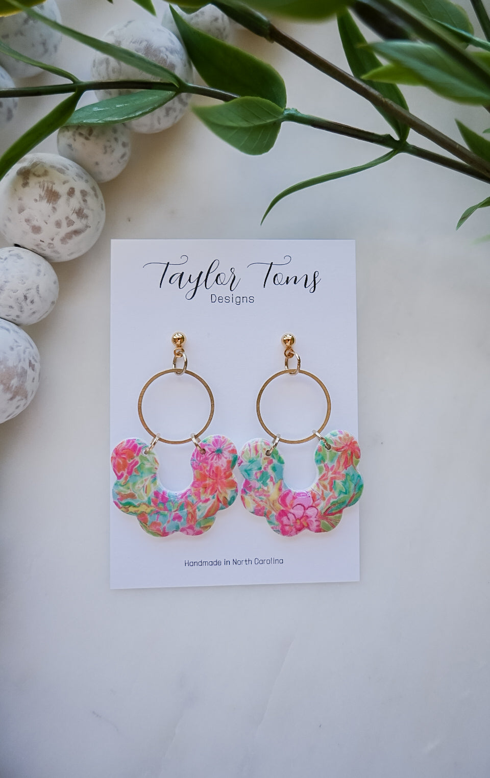 These earrings are perfect for any occasion! They have the prettiest floral pattern with a shiny finish. Since they are made of clay, they are nickel free and very lightweight!