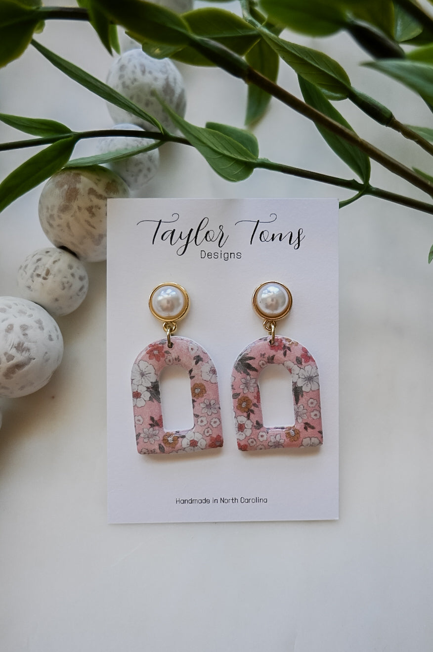 These earrings are perfect for any occasion! They have the prettiest floral pattern with a shiny finish. Since they are made of clay, they are nickel free and very lightweight!