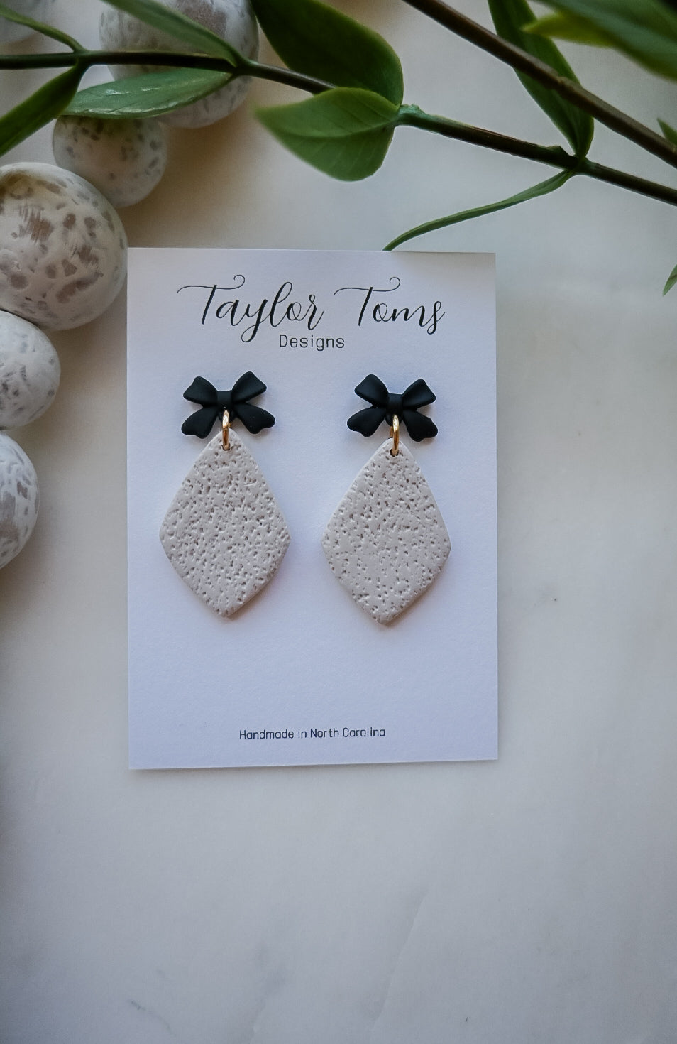 These earrings are perfect for any occasion! They are tan with a hammered texture. Since they are made of clay, they are nickel free and very lightweight!