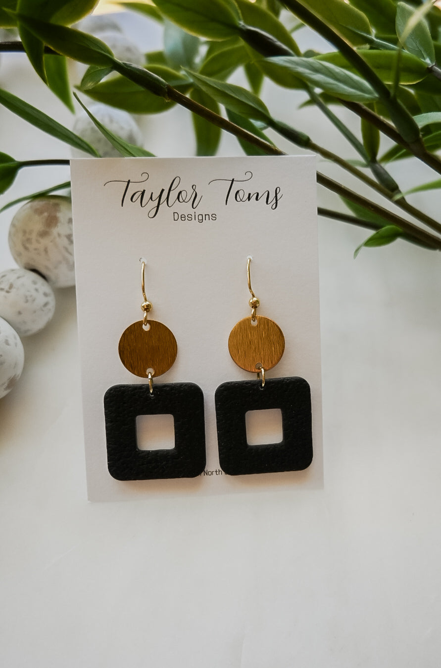 These earrings are perfect for any occasion! They are black with a hammered texture. Since they are made of clay, they are nickel free and very lightweight!