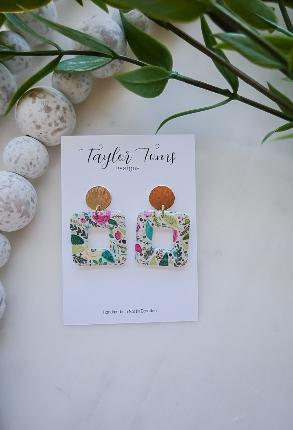 These earrings are perfect for any occasion! They have the prettiest floral pattern with a shiny finish.  Since they are made of clay, they are nickel free and very lightweight!