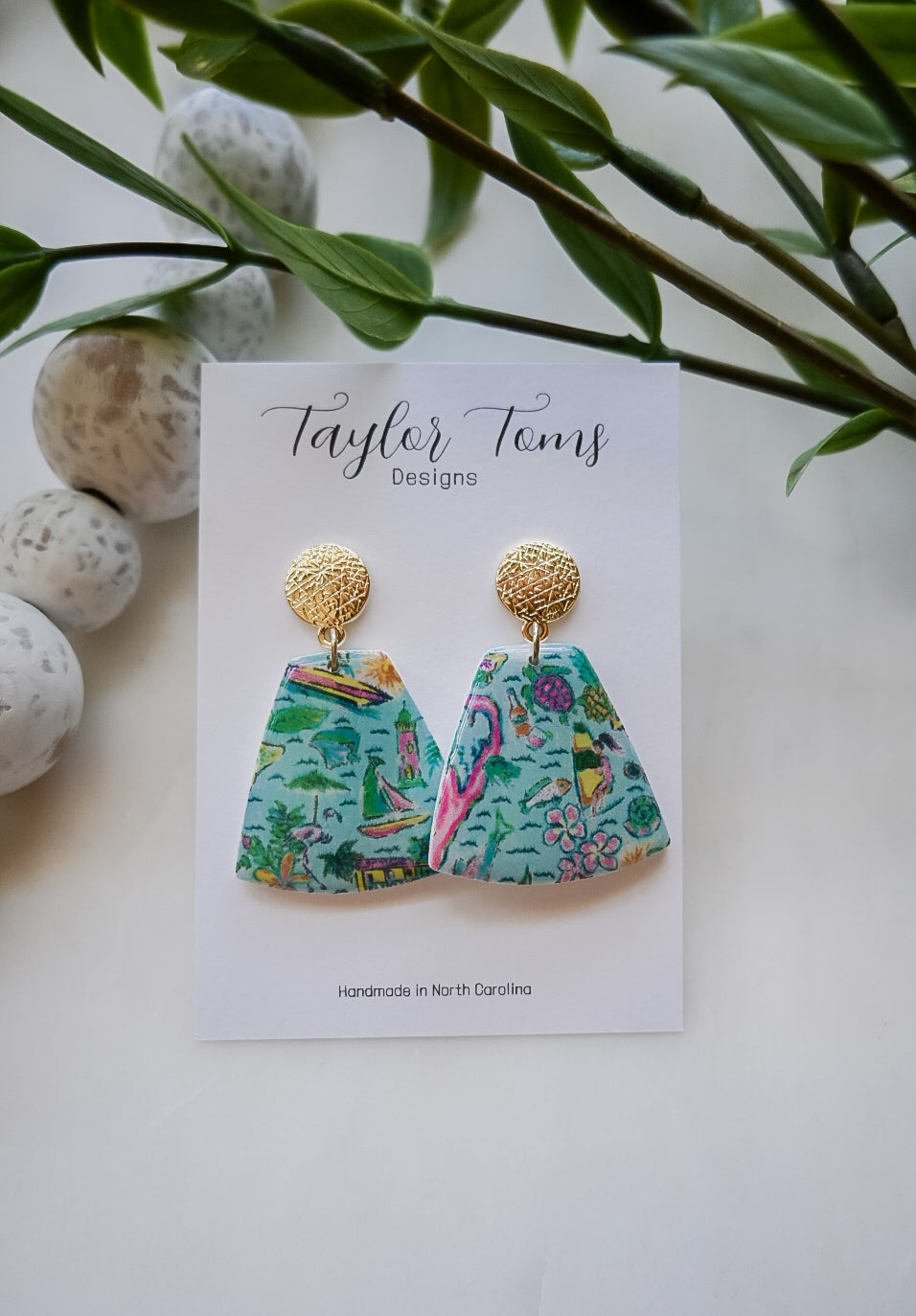 These earrings are perfect for any occasion! They have the prettiest beachy pattern with a shiny finish. Since they are made of clay, they are nickel free and very lightweight!