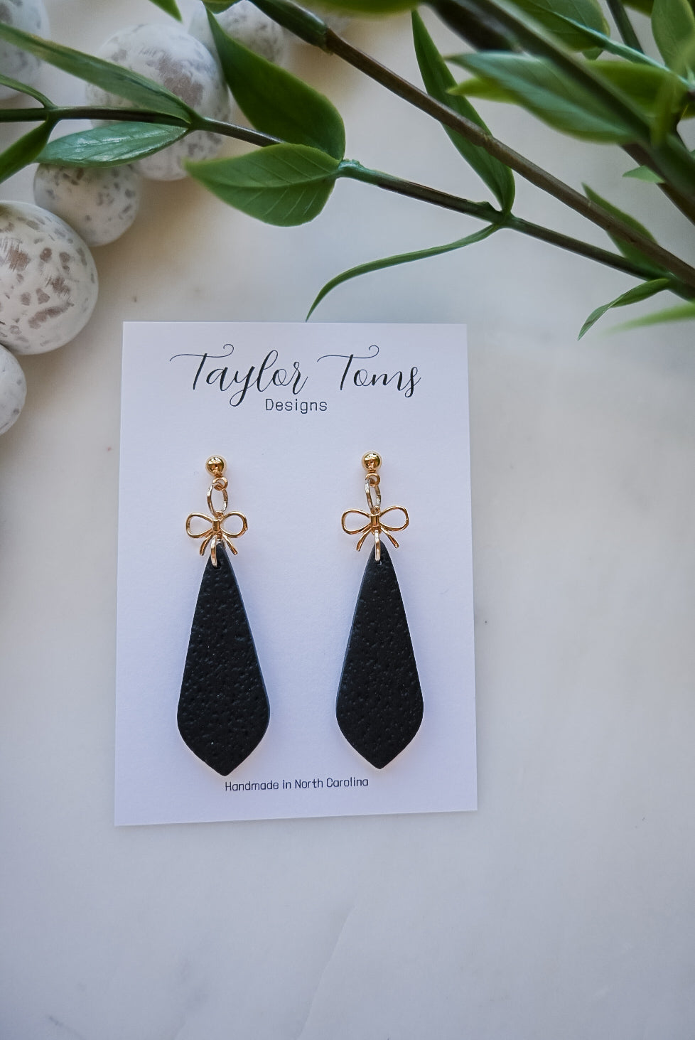 These earrings are perfect for any occasion! They are black with a hammered texture. Since they are made of clay, they are nickel free and very lightweight!