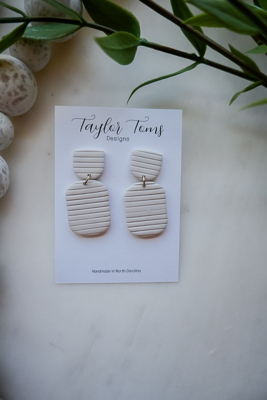 These earrings are perfect for any occasion! They are tan with a ribbed texture. Since they are made of clay, they are nickel free and very lightweight!