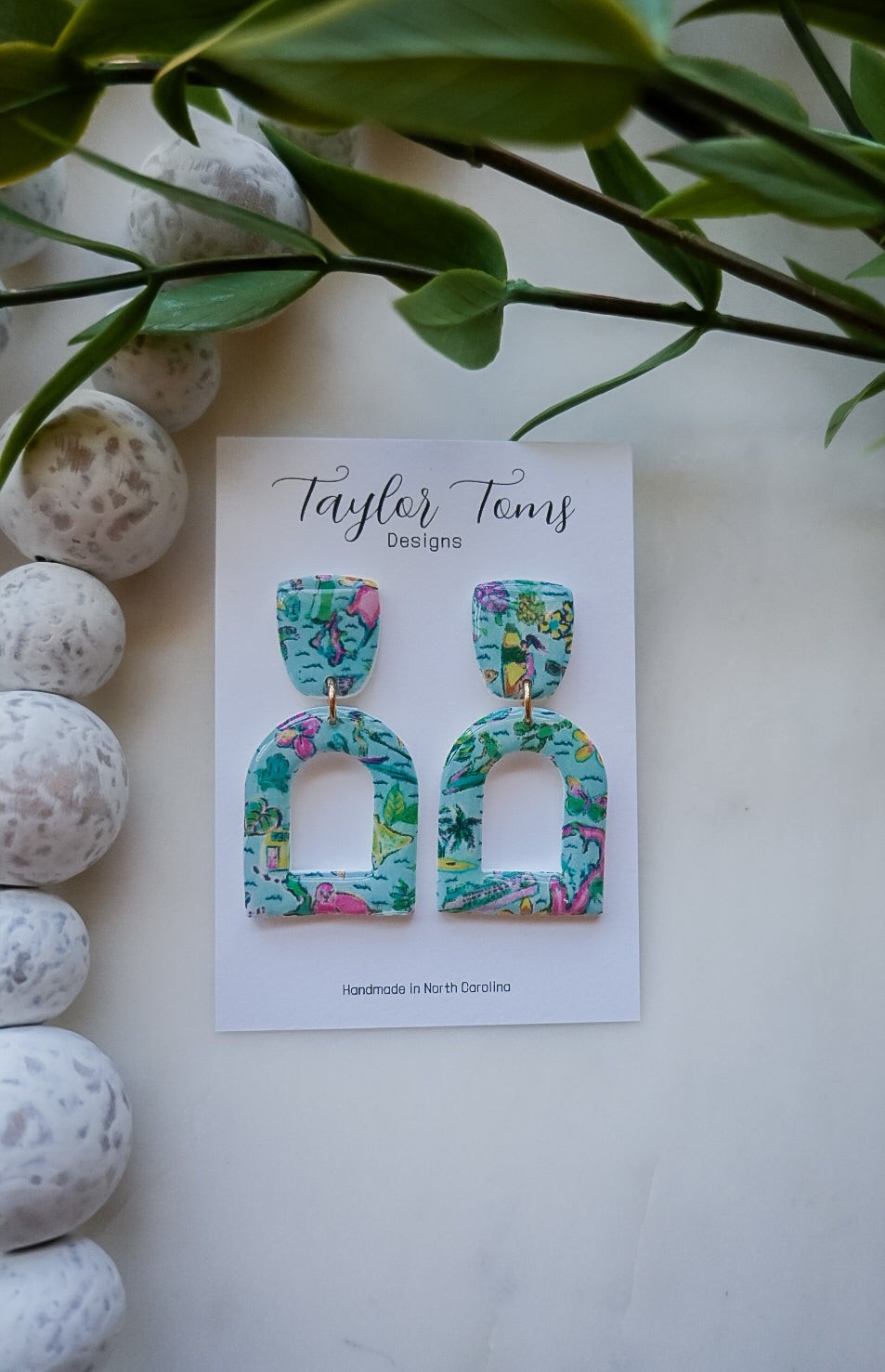 These earrings are perfect for any occasion! They have the prettiest floral pattern with a shiny finish. Since they are made of clay, they are nickel free and very lightweight!