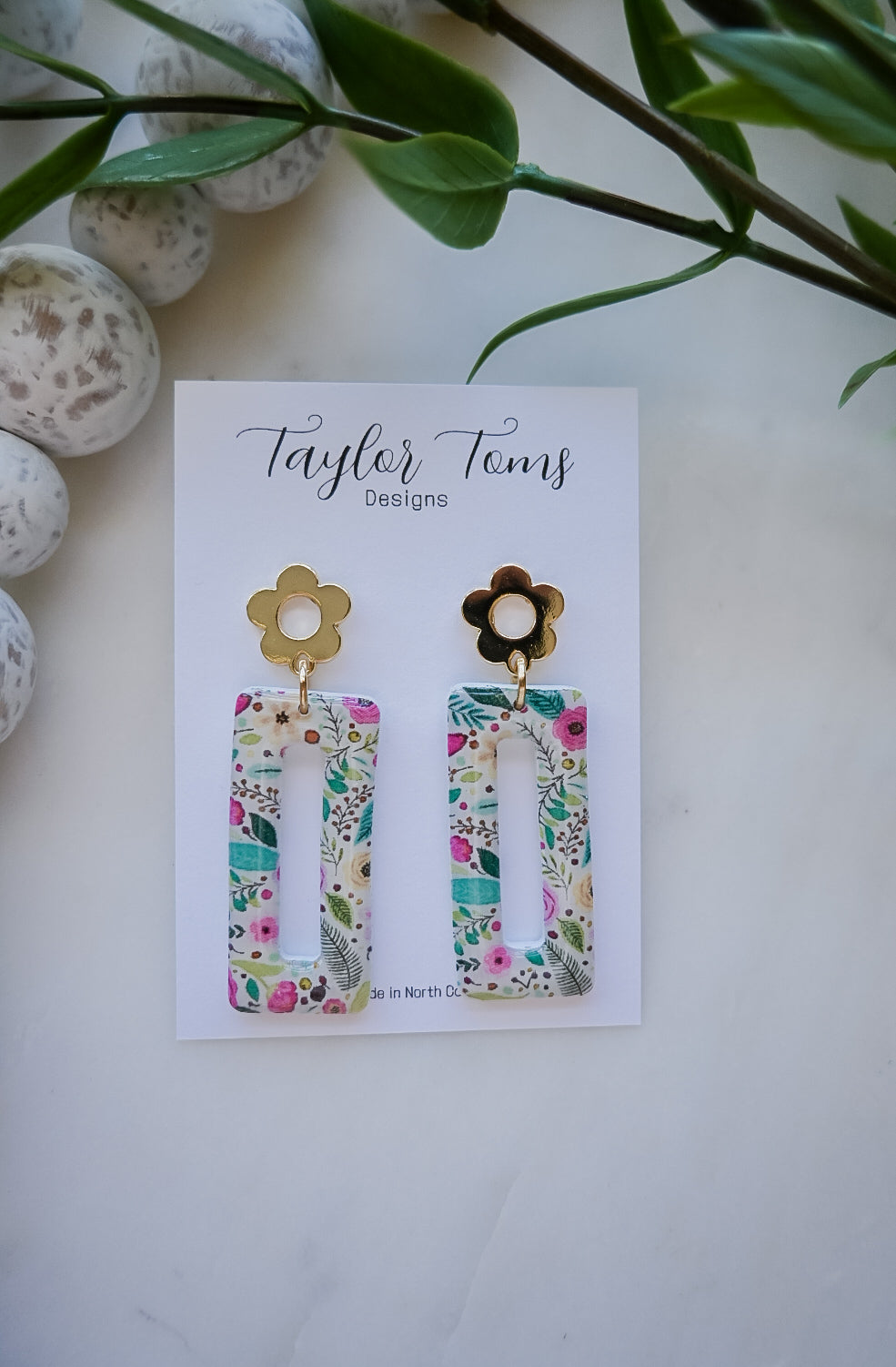 These earrings are perfect for any occasion! They have the prettiest floral pattern with a shiny finish. Since they are made of clay, they are nickel free and very lightweight!