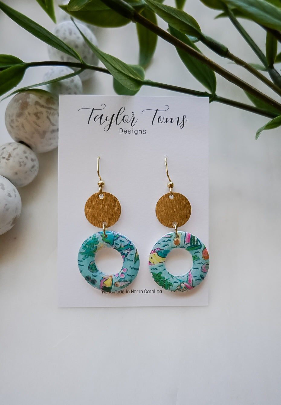 These earrings are perfect for any occasion! They have the prettiest beachy pattern with a shiny finish. Since they are made of clay, they are nickel free and very lightweight!
