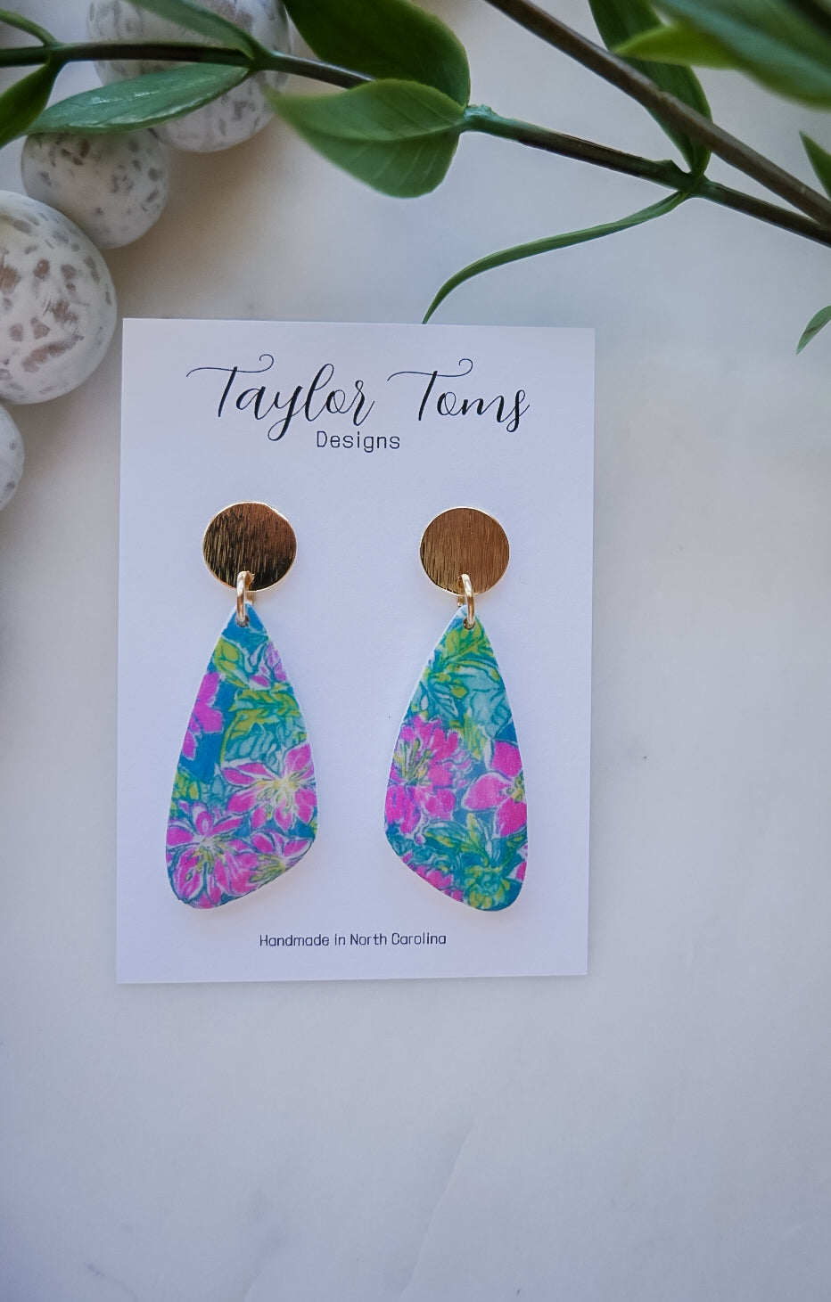 These earrings are perfect for any occasion! They have the prettiest floral pattern with a shiny finish. Since they are made of clay, they are nickel free and very lightweight!