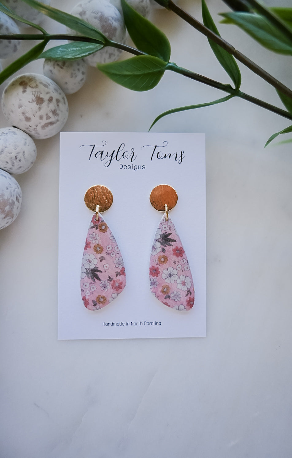 These earrings are perfect for any occasion! They have the prettiest floral pattern with a shiny finish. Since they are made of clay, they are nickel free and very lightweight!