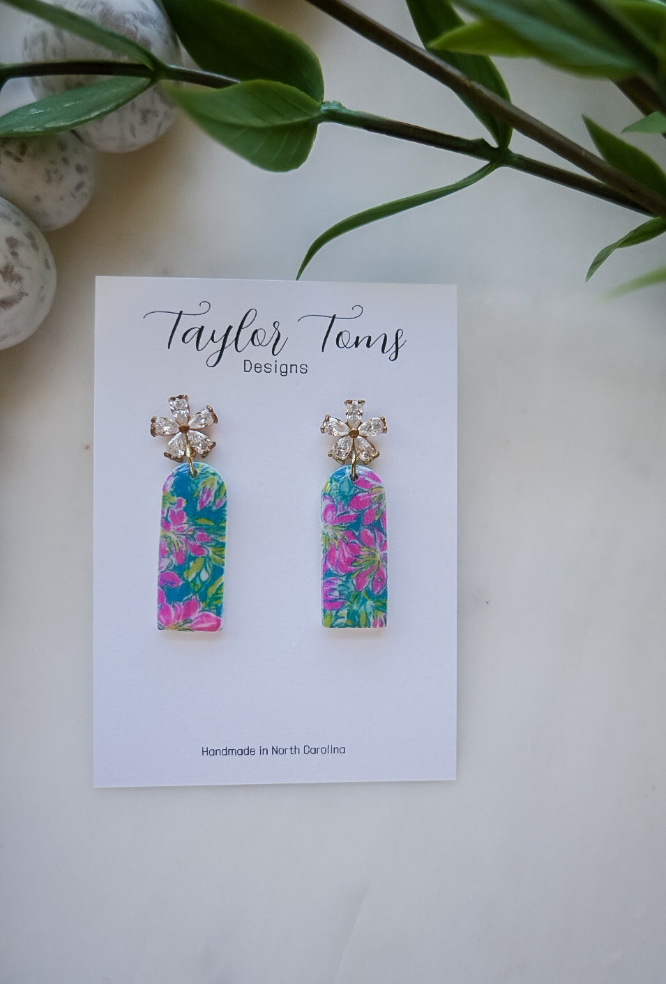 These earrings are perfect for any occasion! They have the prettiest floral pattern with a shiny finish. Since they are made of clay, they are nickel free and very lightweight!